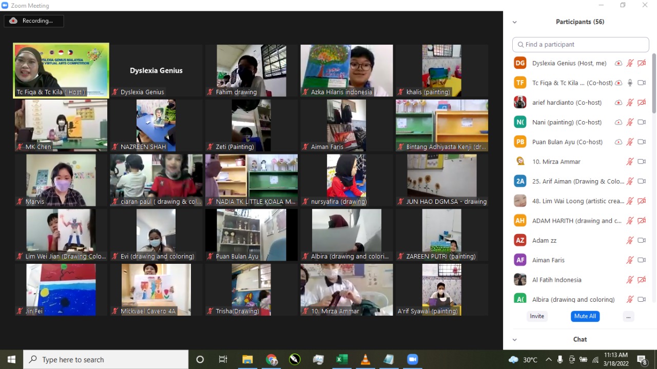 On March 18, 2022, Dyslexia Genius held another event, this time a Virtual Arts Competition for dyslexic children living in the Southeast Asia (ASEAN) region. This event was held by Dyslexia Genius Malaysia together with Bulan Ayu Dyslexia Community.